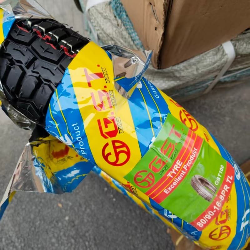 Upgrade your motorcycle's performance with the GST 80/90-16 8PR TL (Tubeless) Tire (Model GST100) from HACI Brand. This premium all-terrain tire is engineered for exceptional durability, superior grip, and reliable performance across various riding conditions.